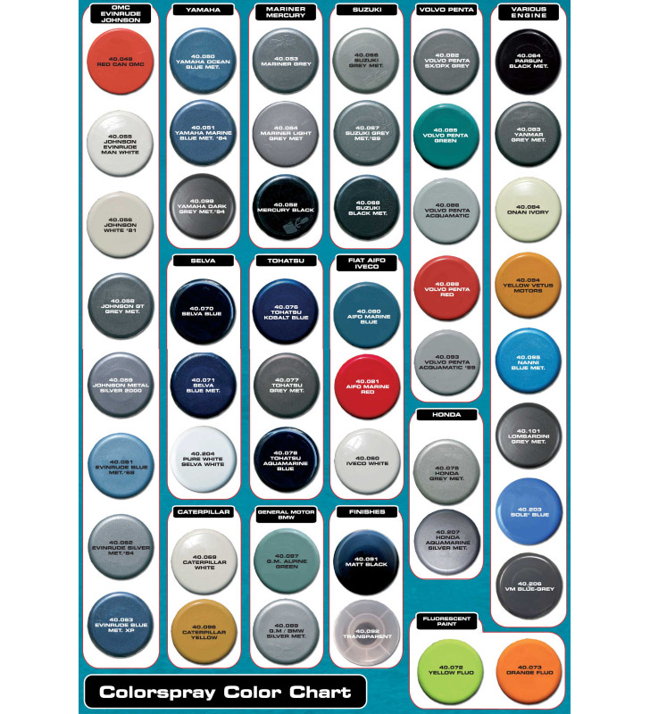 I colori TK sono disponibili nelle tinte originali delle marche dei motori marini entro e fuoribordo più diffusi.