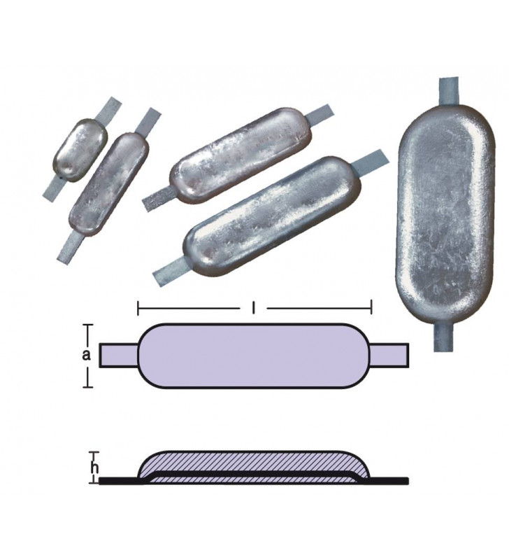 Anodi da saldare, ovali con inserto per scafi. Si possono anche forare ed imbullonare.